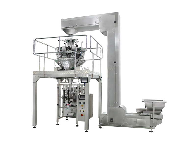 A linha de embalagem de doces é composta por um elevador de caçamba, plataforma de trabalho, balança multicabeçote, máquina de embalagem vertical de formação, enchimento e selagem (VFFS) e transportador de produto acabado. A linha de produção permite a pesagem, a formação de sacos, o enchimento, a selagem e o transporte totalmente automatizados, oferecendo alta precisão, alta eficiência e controle inteligente. É ideal para produção contínua de média a grande escala.