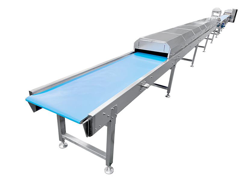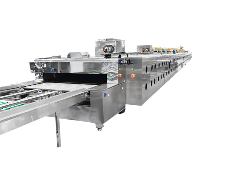 Nesta etapa, os bolos assados passam da fase de cozimento para um estado pronto para embalagem. Lâmpadas UV de alta intensidade são instaladas acima e ao longo das laterais da esteira transportadora para esterilizar tanto as superfícies dos produtos quanto as esteiras, por meio da destruição do DNA microbiano. Isso inibe eficazmente o crescimento microbiano, garante um processo de resfriamento limpo e higiênico, preserva a umidade e a textura e prolonga significativamente o prazo de validade.